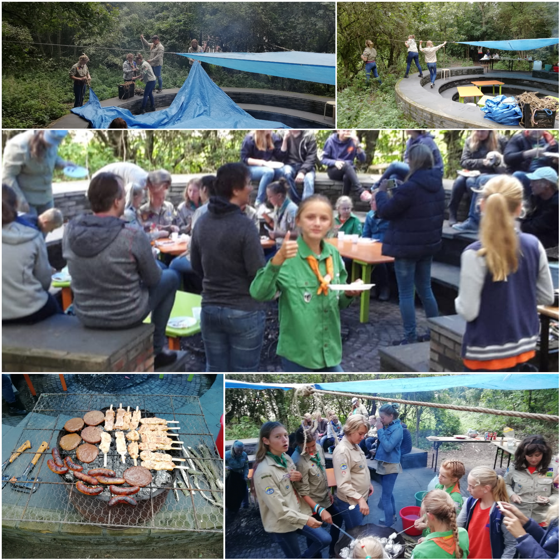 Op 8 september 2018 is het seizoen traditioneel geopend met een BBQ. Wat doen scouts als het regent…….inderdaad dan spannen ze twee zijltjes met een opening voor het vuur! 100%scout=100%Pyromaan.
