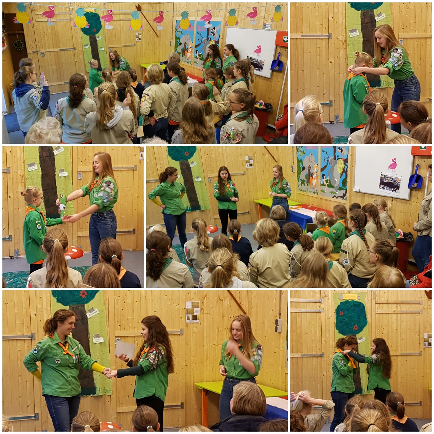 Afgelopen zaterdag 10 november was de dag een nieuwe welp mocht worden geïnstalleerd. Vol trots wist zij luid en duidelijk de wet op te noemen. Ook Lola die nu als Rikie Tikie door het leven gaat is nu geïnstalleerd als leiding. Beide hebben hun naam op het groene kleed mogen schrijven iets dat al een eeuwenoude traditie is binnen de meidenvereniging Wiawaha. Door de doorstroming van een groot aantal welpen zijn we op zoek naar nog meer welpen die uiteindelijk geïnstalleerd willen worden.