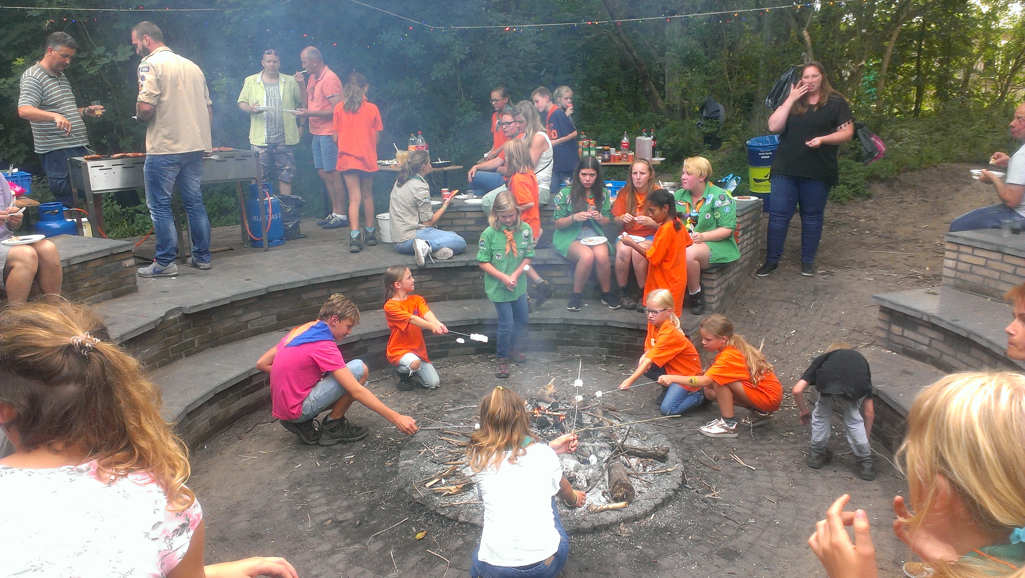 Maar waar normaal de opkomst afgelopen zou zijn, gingen we ook nog een spelletje Vlaggenroof spelen, samen met de Scouts. Toen de vlag eindelijk gevonden was gingen we barbecueën. Samen met ouders, Scouts, Sherpa’s, leiding en bestuur was het heel erg gezellig. Ook was er een mooi vuurtjes van ons gesprokkelde hout, waarop we heel veel marshmallows hebben gemaakt en daarna opgegeten…Mmm….