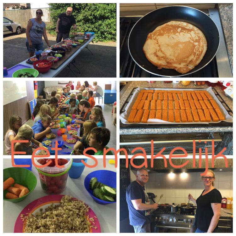 Dagelijks na afloop van alle avonturen stond een lekkere maaltijd klaar verzorgd door een enthousiaste kookstaf bestaande uit enkele ouders en bestuurslid Anneke.